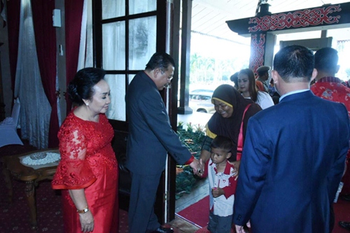 Tamu openhouse natal di istana Rakyat dari berbagai lapisan masyarakat. Gubernur Kalbar Cornelis beserta keluarga menggelar open house Natal 2017 di Istana Rakyat Pendopo Gubernur, Senin (25/12). (Foto: Hentakun)