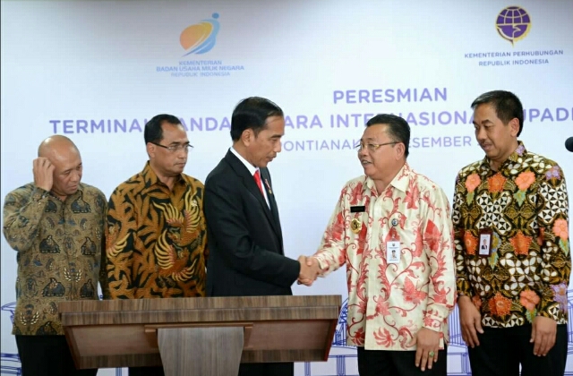 Dalam peresmian tersebut, tampak mendampingi Presiden dan Ibu Negara Iriana Joko Widodo, Menteri Koordinator bidang Kemaritiman Luhut Binsar Panjaitan, Menteri Perhubungan Budi K. Sumadi, Kepala Staf Kepresidenan Teten Masduki, Gubernur Kalimantan Barat Cornelis beserta Istri dan Direktur Utama PT Angkasa Pura II Muhammad Awaluddin.