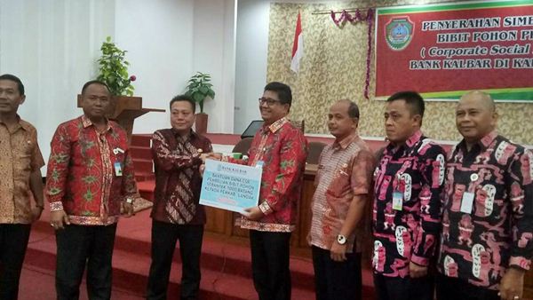 Wakil Bupati Herculanus Heriadi menerima secara simbolis sumbangan program Corporate Social Responsibility (CSR) dari Bank Kalbar. (Foto: Istimewa)