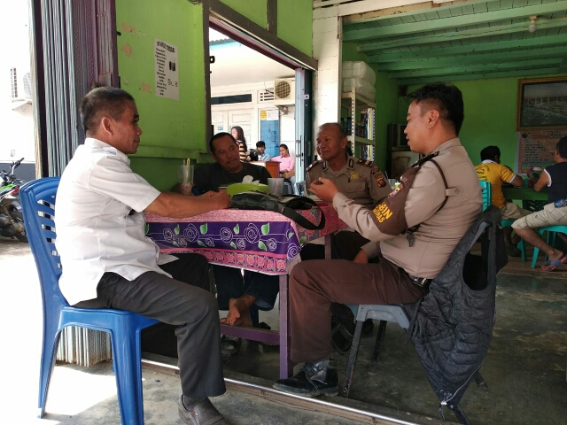 Kapolsek Menyuke dan Bhabinkamtibmas menyambangi warga yang sedang duduk diwarung. Ia pun ikut duduk dan nongkrong bersama sembari menyampaikan himbauan kamtibmas kepada warga yang berada di warung tersebut.