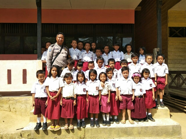 Salah satunya dengan kegiatan mengunjungi Sekolah Dasar (SD) dan menemui para murid pada saat jam istirahat, tampak Bripka Ewaldus Leo saat mengunjungi SDN 05 di Desa Gamang Kecamatan Banyuke Hulu Kabupaten Landak, Selasa (07/8/2018).