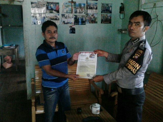 MENYUKE, LANDAKNEWS – Guna menjaga situasi yang kondusif di wilayah Desa Kayuara, Bhabinkantibmas Polsek Menyuke Polres Landak Bripka Heri melakukan kampanye anti karhutla dan pembagian Maklumat Kapolda Kalbar kepada masyarakat di Desa binaannya, di Desa Kayuara Kecamatan Menyuke, Rabu (08/08/2018).