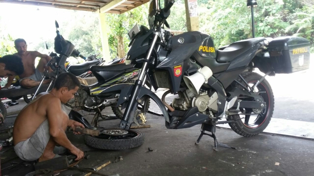 MANDOR, LANDAKNEWS – Rabu (15/8 /18), pukul.11.00.WibKanit Sabhara Ipda. Sudarsum Polsek Mandor melakukan perbaikan Kendaraan Sepeda motor dan Mobil dinas milik Inventaris Polsek Mandor.
