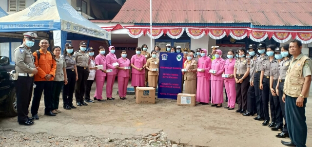 NGABANG, LANDAKNEWS – Satuan Lalu Lintas Polres Landak bersama ketua Bhayangkari Cabang Landak, Dinas Kesehatan Kabupaten Landak, BPBD Kabupaten Landak dan Polwan Polres Landak membagikan masker kepada para pengendara motor dan mobil , Selasa (21/08/18), sebanyak 6.000 masker dibagikan kepada para pengendara.