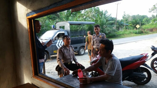 Personil Polsek Mandor KSPKT Regu 1 Aiptu Tadung dan Bripka Gregorius Endisa Melaksanakan patroli ke Desa Kerohok kecamatan mandor Kabupaten Landak.