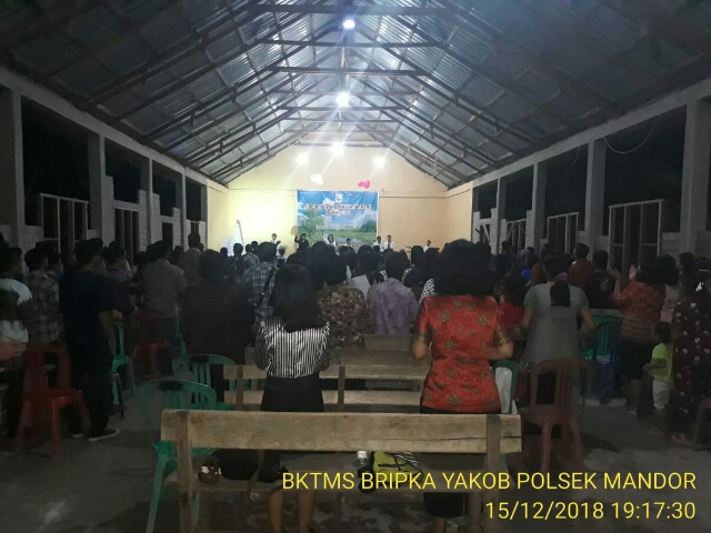 Sedangkan pembacaan Firman Tuhan dipimpin oleh Pdt. Zakarias Manambe. kegiatan perayaan natal bersama berjalan dengan aman dan lancar tidak ada kendala dan gangguan kamtibmas,” ujar Bripka Yakob.