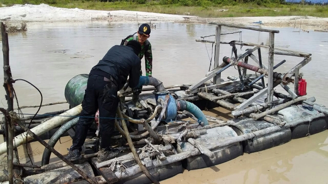 “Ada satu set mesin yang ditinggalkan oleh pemiliknya yang diduga kuat digunakan untuk aktifitas PETI kemudian dilakukan pemusnahan langsung ditempat agar tidak dapat digunakan lagi,” terang Kapolsek.