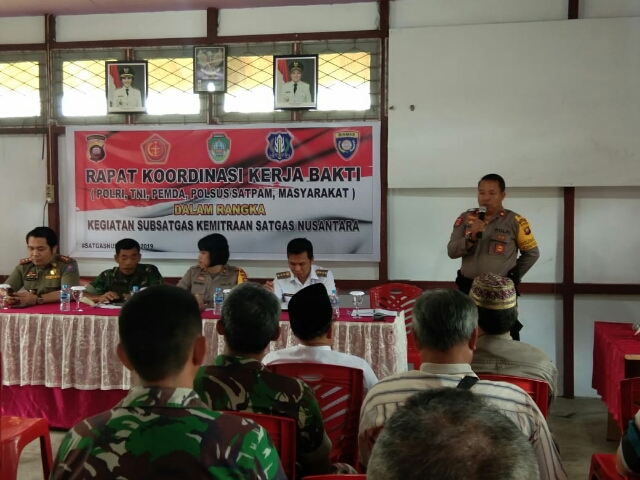 Terkait salah satu peran dan fungsinya, Rabu (23/1/19) siang, Sat Binmas Polres Landak sebagai fungsi yang mengawaki subsatgas kemitraan telah menjabarkan peran tugasnya dengan melaksanakan pertemuan terkait Rapat Koordinasi Kerja Bakti yang melibatkan Polri,TNI, Pemda, Polsus/Satpam dan masyarakat dengan mengambil tempat di aula Kantor Camat Ngabang.