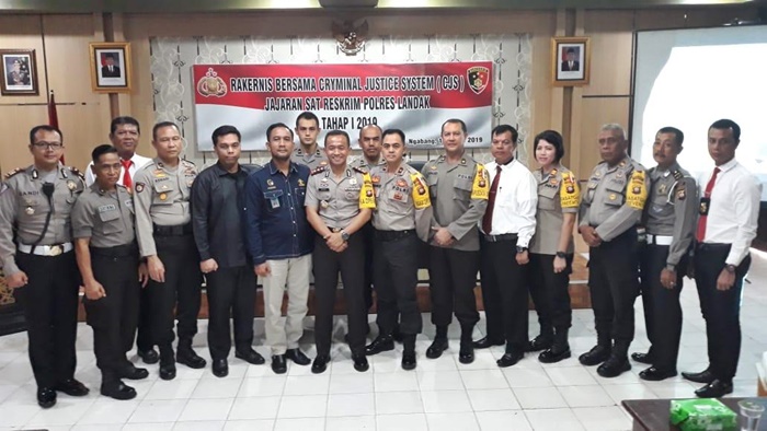 Acara Rakernis Criminal Justice System (CJS) tahap 1 Tahun 2019 dibuka langsung oleh Kapolres Landak AKBP Bowo Gede Imantio.,S.IK., M.H. yang dihadiri oleh Instansi Pemerintah seperti Kejaksaan, Pengadilan, Bapas. sedangkan untuk dari Kepolisian Polres Landak seperti, Kabag, Kasat, Personil Reskrim Polres dan Personil Reskrim Polsek Jajaran Polres Landak.