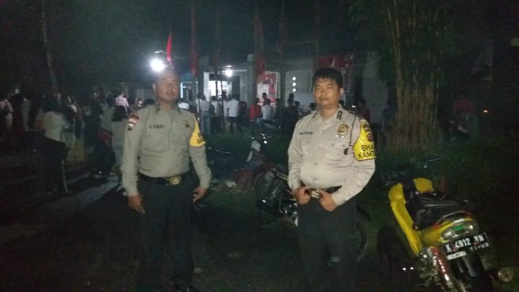 Ngabang, Selasa malam (12/03) beberapa personil Polsek Ngabang berikan bantuan pengamanan Kampanye Dialogis Caleg Partai Demokrasi Indonesia Perjuangan (PDIP) di Dusun Ladangan Desa Amboyo Selatan Kecamatan Ngabang.