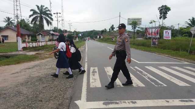 Dalam memberikan pelayanan keamanan, kenyamanan dan kelancaran dalam berlalu lintas Kepala Sentra Pelayanan Kepolisian Terpadu Aiptu Tadung melaksanakan kegiatan Ploting Poin dijalur rawan terjadi kecelakaan lalu lintas di Desa Mandor, Kamis (21/03/19).