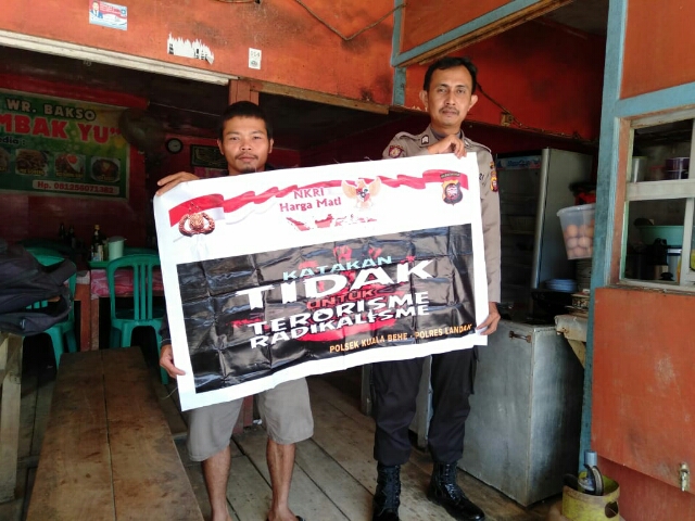 Secara terpisah Kapolsek Kuala Behe Iptu Iwan Gunawan,SH mengatakan “Polri tidak bisa berjalan sendiri, kita harus bersama-sama menangkal terorisme dan radikalisme. Target kami, sosialisasi dan pembentangan sepanduk ini, bukan hanya dikalangan Warga Masyarakat tetapi juga dikalangan Para Pemuda maupun Pemerintah Daerah.