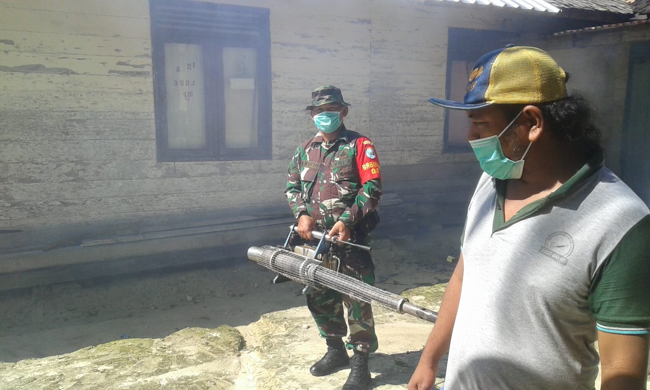 Kotawaringin Barat, Rabu (15/5/19) – Babinsa Koramil 1014-02/Kumai Serda Aripin, bersama Polsek Kumai, Aparat Kecamatan Kumai, KKP Kumai dan masyarakat melaksanakan pendampingan petugas dari Puskesmas Kumai dalam program Pemberantasan Sarang Nyamuk (PSN) dengan melakukan foging atau pengasapan di sekitar pemukiman masyarakat di Desa Sungai Tendang, Kec. Kumai, Kab. Kotawaringin Barat.