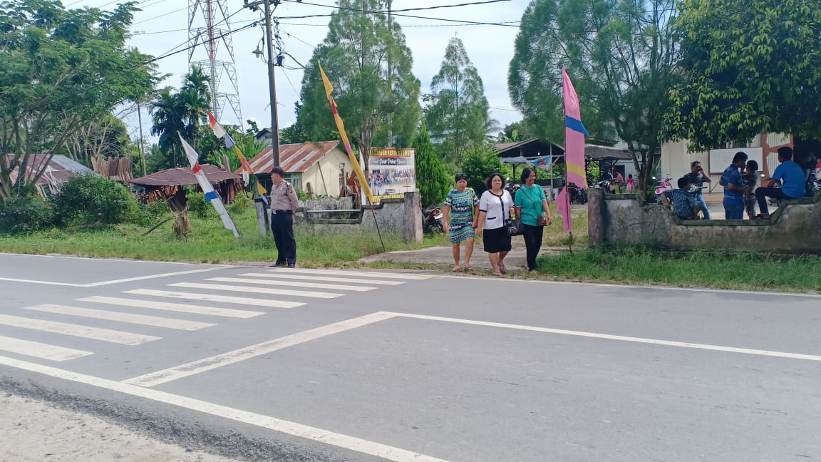 MANDOR – Kamis (30/5). Dalam menciptakan situasi aman lancar terhindar dari gangguan Kamtibmas, Kepala Sentra Pelayanan Kepolisian Terpadu Polsek Mandor Aiptu Tadung bersama Brigadir Dingin Siahaan melaksanakan kegiatan pengamanan Ibadah Misa kenaikan Isa Al Masih di Gereja Katolik Santo Petrus Mandor