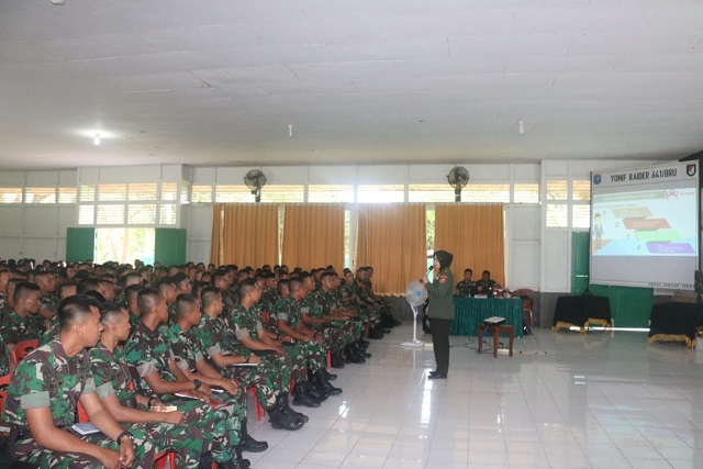 Danyonif R 641/Bru, Letnan Kolonel Inf, Kukuh Suharwiyono mengatakan, pembekalan tersebut dilaksanakan untuk memberikan pengetahuan tentang HIV/AIDS kepada prajurit yang akan melaksanakan tugas operasi di perbatasan.