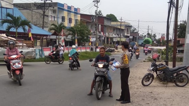 NGABANG, KALBAR – Menjelang Operasi Patuh, Bhabinkamtibmas turut sosialisasikan. atau razia bagi pelanggar lalu lintas akan dilaksanakan mulai tanggal 29 Agustus sampai dengan 11 September 2019, Satlantas Polres Landak dibantu Polsek jajaran polres Landak khususnya Polsek Ngabang melakukan sosialisasi tertib lalu lintas di wilayah hukum Kecamatan Ngabang dan Jelimpo Kabupaten landak Rabu siang (28/8).
