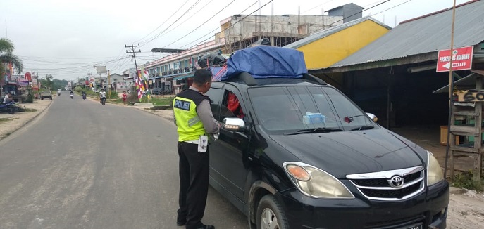 NGABANG, KALBAR – Polantas Polsek Ngabang Aipda Dedi surono memberikan teguran terhadap pengemudi mobil penumpang di Jl. Apandirani Kecamatan Ngabang, Kamis (29/08/2019).