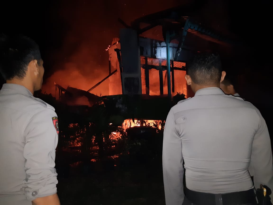 NGABANG, KALBAR –Tengah Malam piket jaga bersama Kanit 2 SPKT Polres Landak mendapatkan laporan informasi dari masyarakat bahwa telah terjadi kebakaran rumah.