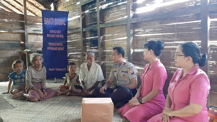 Bakti Sosial tersebut dalam rangka berbagi kasih menyambut hari Raya Natal dan merupakan bentuk kepedulian Ibu-ibu Bhayangkari Ranting Meranti kepada warga masyarakat yang kurang mampu.