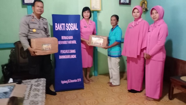 NGABANG – Ketua Ranting Bhayangkari Ngabang Morin B. Sembiring laksanakan Program Bakti Sosial dengan Tema Berbagi Kasih Menyambut Hari Natal kepada salah satu Warakauri Polri di Jelimpo. Rabu (18/12/19).