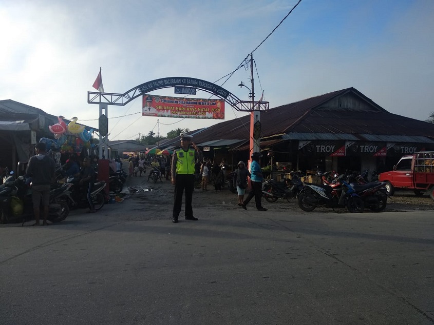 Bripka Guntur Pratama bersama Bripka Meiiswanto menjelaskan bahwa kegiatan ini bertujuan untuk menjaga kelancaran arus lalu lintas baik pengguna jalan maupun aktivitas warga yang akan berbelanja karena pasar mandor terletak di persimpangan jalan.