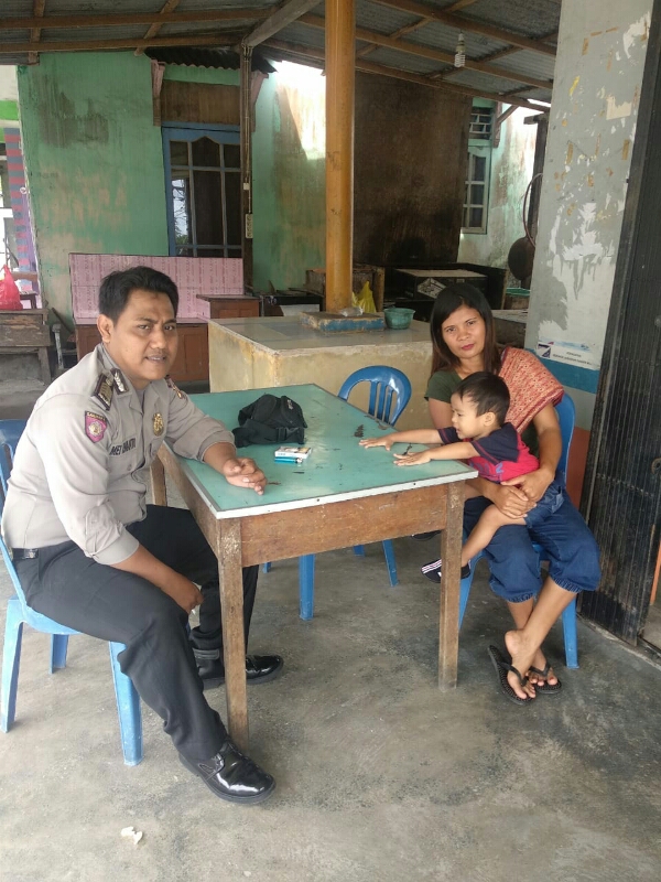 MANDOR. – Kanit Samapta Polsek Mandor BRIPKA Mei Iswanto melaksanakan kegiatan melalui peningkatan patroli wilayah dan singgah sambang warga, sekaligus menjalin komunikasi bersama Rosita Warga Desa Kayuara, yang sedang santai di warung, Minggu (22/12/2019).