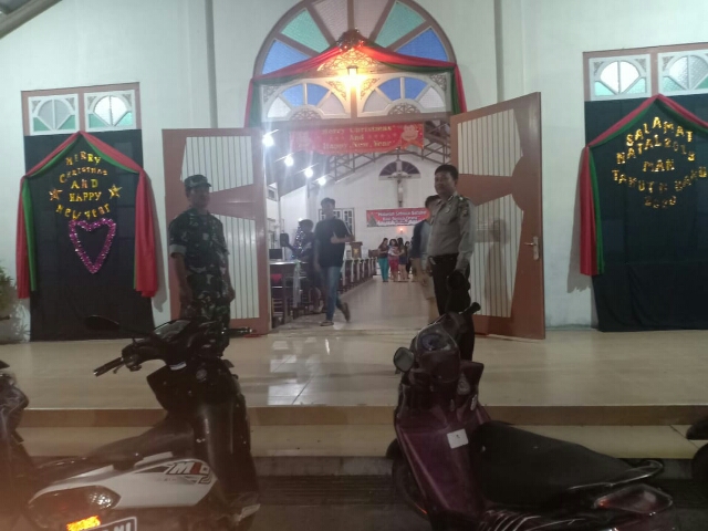 MANDOR – Demi menjaga situasi kamtibmas yang aman nyaman dan kondusif di wilayah hukum Kepolisian Sektor Mandor menjelang hari raya natal Anggota Polsek Mandor bersama anggota Koramil Mandor melaksanakan pengecekan kesiapan ibadah hari raya Natal di Gereja ST. Petrus Mandor. Senin (23/12/19).