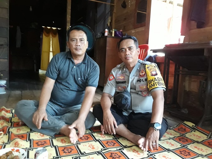 SEBANGKI – Bhabinkamtibmas Polsek Sebangki Bripka Mamok Raharjo melaksanakan giat sambang sambil berikan himbauan Kamtibmas jelang Perayaan tahun baru 2002, Senin (30/12/19).
