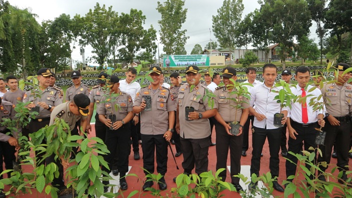 “Di sini Pohon bukan hanya ditanam lalu dibiarkan sampai mati tetapi saya mewajibkan anggota untuk memeliharanya sampai tumbuh subur,” tegas Kapolres.