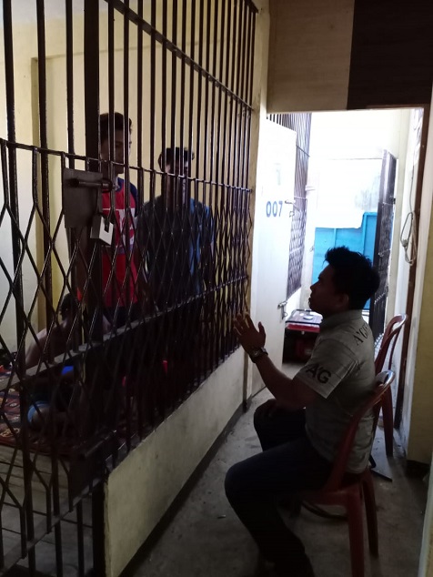 MENJALIN – Untuk Memastikan Keamanan tahanan, Petugas jaga tahanan, Bripka M.Rozali selaku anggota Reskrim Polsek Menjalin secara rutin melaksanakan kontrol tahanan di ruang sel tahanan Polsek Menjalin. Sabtu (25/1/20) pagi.
