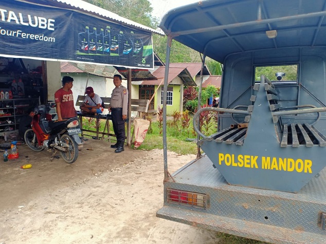 Ka.SPKT Regu III BRIPKA Herman Aprianto pada saat pelaksanaan patroli ditemani BRPTU Riko Batubara Anggota Polsek Mandor menjelaskan giat patroli ini bertujuan untuk menciptakan situasi kamtibmas yang aman nyaman dan kondusif.