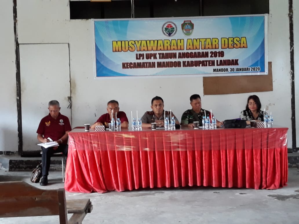 MANDOR – Kapolsek Mandor IPTU Anuar Syarifudin menghadiri kegiatan Musyawarah Antar Desa dan Laporan Pertanggung Jawaban Unit Pengelola Kegiatan (UPK) dari Badan Kerjasama Antar Desa Kecamatan Mandor, pada Kamis (30/1/2020).