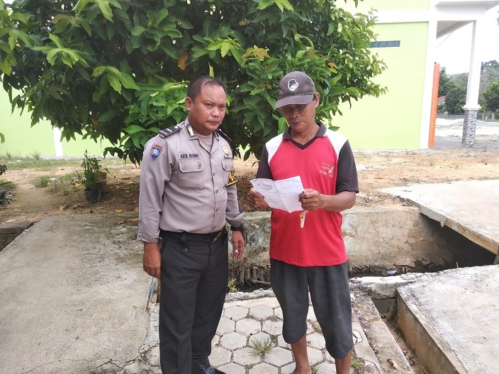 Bhabinkamtibmas Polsek Mandor AIPDA Arie, menyampaikan himbauan Karhutla di Desa Keramas Kecamatan Mandor Kabupaten Landak.