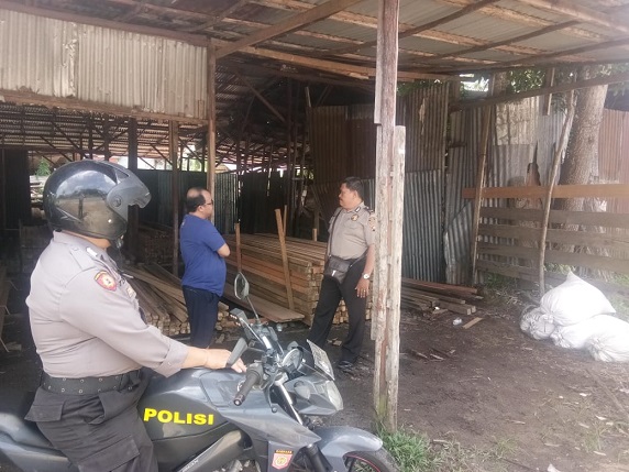 Ngabang – Patroli yang di pimpin Wakapolsek Ngabang Polres Landak Kal- Bar, Iptu Indra Wahyudin sambangi pengusaha Mebel yang berada di Tikungan Pal 2 Ngabang Dsn Tungkul Ds Hilir Kantor Kec Ngabang Kab Landak, Senin (03/02/20 ).