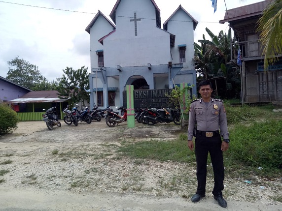 Kuala Behe – Dalam rangka menciptakan situasi kamtibmas yang kondusif, Anggota Piket Polsek Kuala Behe yakni Ps.Kanit Sabhara Bripka Adri bersama Brigpol Rian Hidayat melaksanakan pengamanan giat ibadah di gereja yang ada di Kecamatan Kuala Behe,agar Umat Nasrani bisa tenang dan aman,” Minggu (9/2/2020)