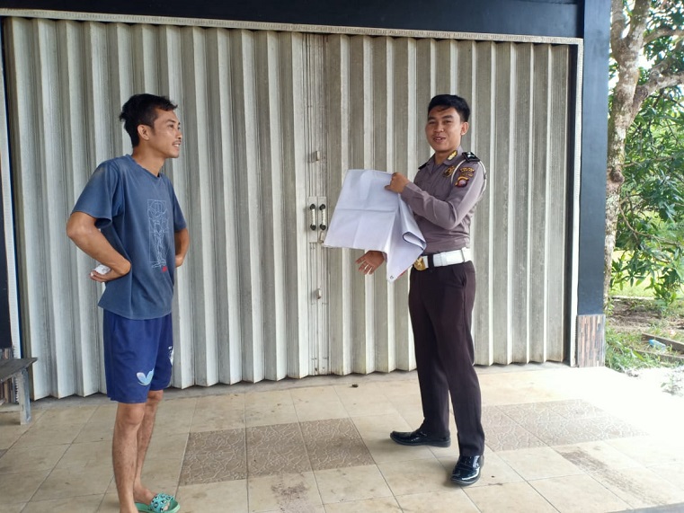 MANDOR-Disela-sela Kesibukan sebagai anggota Polri BRIPKA Herman Menyapa dan memberikan himbauan kepada Sijo selaku Warga Desa Kayuara yang sedang Santai di warung, Rabu (12/2/2020)