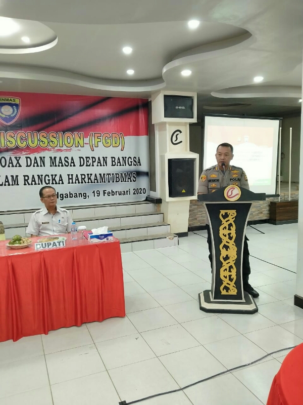 NGABANG – Mengambil tema ‘ Milenial dalam pusaran Hoax dan masa depan bangsa terkait issu nasional dalam rangka Harkamtibmas’ dilaksanakan di aula besar Citra swalayan, Rabu (19/02/2020).
