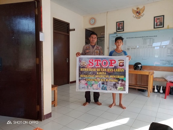 Kuala Behe – Polsek Kuala Behe memaksimalkan peran Bhabinkamtibmas, untuk pencegahan kebakaran hutan dan lahan. Meskipun hari minggu Anggota Polsek Kuala Behe Brigpol Rian Hidayat tetap mengajak masyarakat untuk tidak membakar lahan sembarangan dengan cara membentangkan sepanduk yang dapat berakibatkan merusak Kesehatan terutama di Kecamatan Kuala Behe, Senin (24/2/2020)