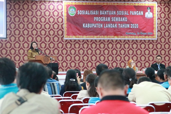 NGABANG – Pemerintah Kabupaten Landak melalui Dinas Sosial, Pemberdayaan Perempuan, Perlindungan Anak dan Keluarga Berencana menggelar sosialisasi bantuan sosial pangan program sembako tahun 2020. Acara sosialisasi ini digelar di Aula utama kantor Bupati Landak, Selasa (10/03/20) dan dibuka langsung oleh Bupati Landak dengan dihadiri oleh Pimpinan Bank Mandiri KCP Ngabang, Pimpinan Bulog Drive Pontianak, Camat se-Kabupaten Landak, Ketua Gapoktan, Kortek dan TKSK se-Kabupaten Landak, Korkab dan Korcam PKH, dan Agen Bank Mandiri sebagai E-Warung.