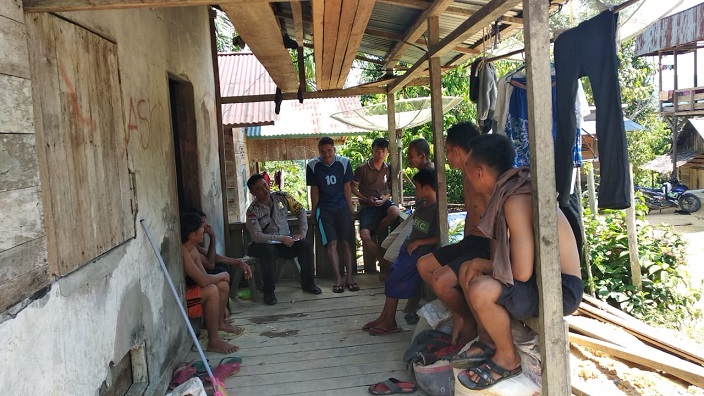 MENYUKE-Bhabinkamtibmas Polsek Menyuke Polres Landak Bripka Ewaldus Leo, sambangi Warga Desa Binaan ingatkan masalah kamtibmas.