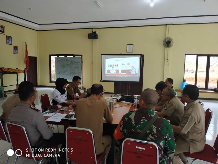 MERANTI – Sehubungan dengan berkembangnya penyebaran Corona Virus Disease (Covid-19) atau lebih dikenal dengan nama Virus Corona, Forkopimcam Meranti mengadakan pertemuan di Aula Kantor Camat Meranti. Senin (16/03/2020) untuk melakukan langkah – langkah antisipasi.