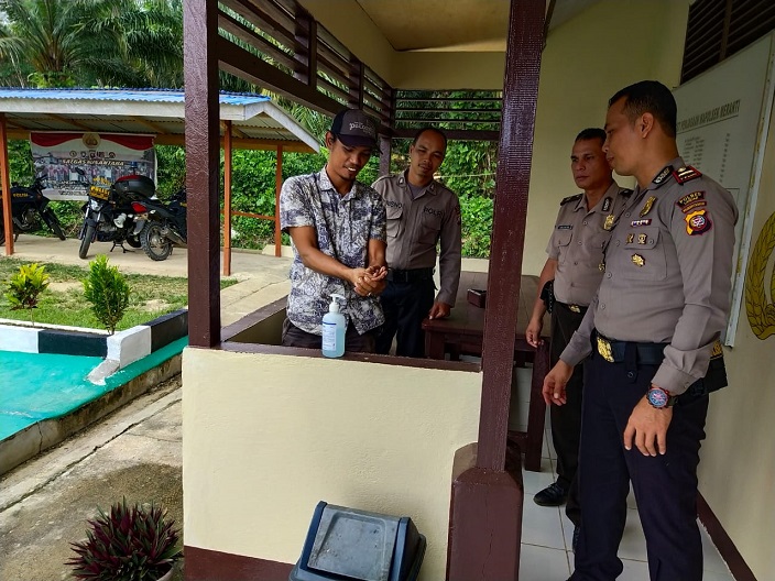 MERANTI – Sehubungan dengan digalakkannya pola hidup sehat dan bersih oleh Polda Kalbar, Kepolisian Sektor Meranti menyediakan Hand Hygiene di Mapolsek Meranti. Senin (16/03/2020).
