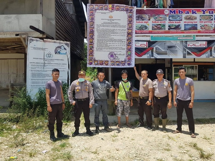 KUALA BEHE – Kapolsek Kuala Behe Ipda Rinto,S.sos bersama anggota untuk memasang maklumat Kapolri Jenderal Polisi Idham Aziz tentang kepatuhan terhadap kebijakan pemerintah dalam penanganan penyebaran Virus Corona (Covid-19)dan dilaksanakan memasang Maklumat tersebut di Wilayah Hukum Polsek Kuala Behe agar warga di sekitarnya bisa membacanya dan di taati peraturannya. Rabu (25/3/2020).