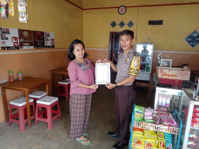 Bhabinkamtibmas Polsek Mandor mengatakan sosialisasi dan pemasangan Maklumat Kapolri ini merupakan salah satu langkah untuk mencegah penyebaran Virus Corona (Covid-19).
