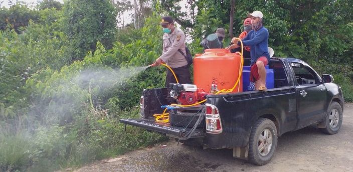 Penyemprotan itu dimulai dari Kantor Desa SungaibLaki, jalanan dan Lorong-lorong, tempat umum, Sekolah, tempat ibadah dan rumah warga serta sarana lainnya.