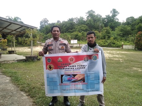 KUALA BEHE-Menyikapi akhir akhir ini sering terjadinya aksi pungutan liar(Pungli)Anggota Polsek Kuala Behe Bripka Suryoko yang bertugas di tengah tengah masyarakat gencar melakukan sosialisasi terhadap warga yang tinggal diKecamatan Kuala Behe dengan cara bentangkan sepanduk untuk mencegah Pungli. Kamis (16/04/2020)