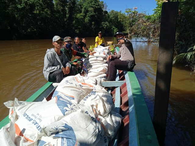 Seperti yang dilakukan Koramil 1203-05/Sei Laur misalnya, hari ini masih melakukan pengawalan pendistribusian beras bantuan ke wilayahnya, Babinsa harus menggunakan sampan atau perahu kecil dalam pengawalan bantuan beras di wilayah Kecamatan Sei Laur.