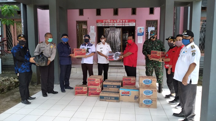 Ketua DPRD Kabupaten Landak Heri Sama SH,MH beserta Rombongan menyerahkan Bantuan Berupa Sembako ,Cairan Disinfektan dan Masker untuk penanggulangan Covid 19 di Kecamatan Air Besar Kabupaten Landak.