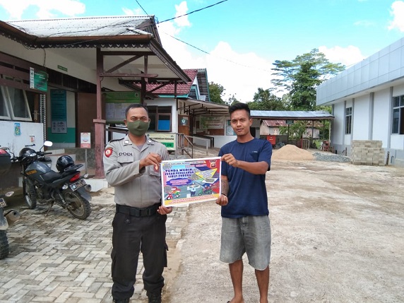 MERANTI – Anggota Polsek Meranti Bripka Dodi memberikan himbauan agar tidak mudik lebaran di tahun 2020 kepada warga Desa Meranti Kecamatan Meranti Kabupaten Landak. Senin (04/05/2020).