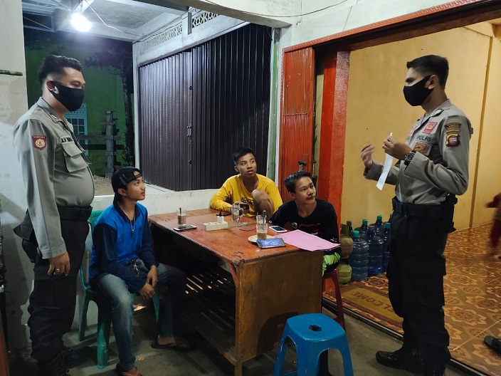 Hal tersebut lakukan oleh Bripka Yusliadi dan Brigpol AV.Miro sebagai upaya mencegah penyebaran virus corona (Covid-19), Jum’at(15/05/2020) malam.